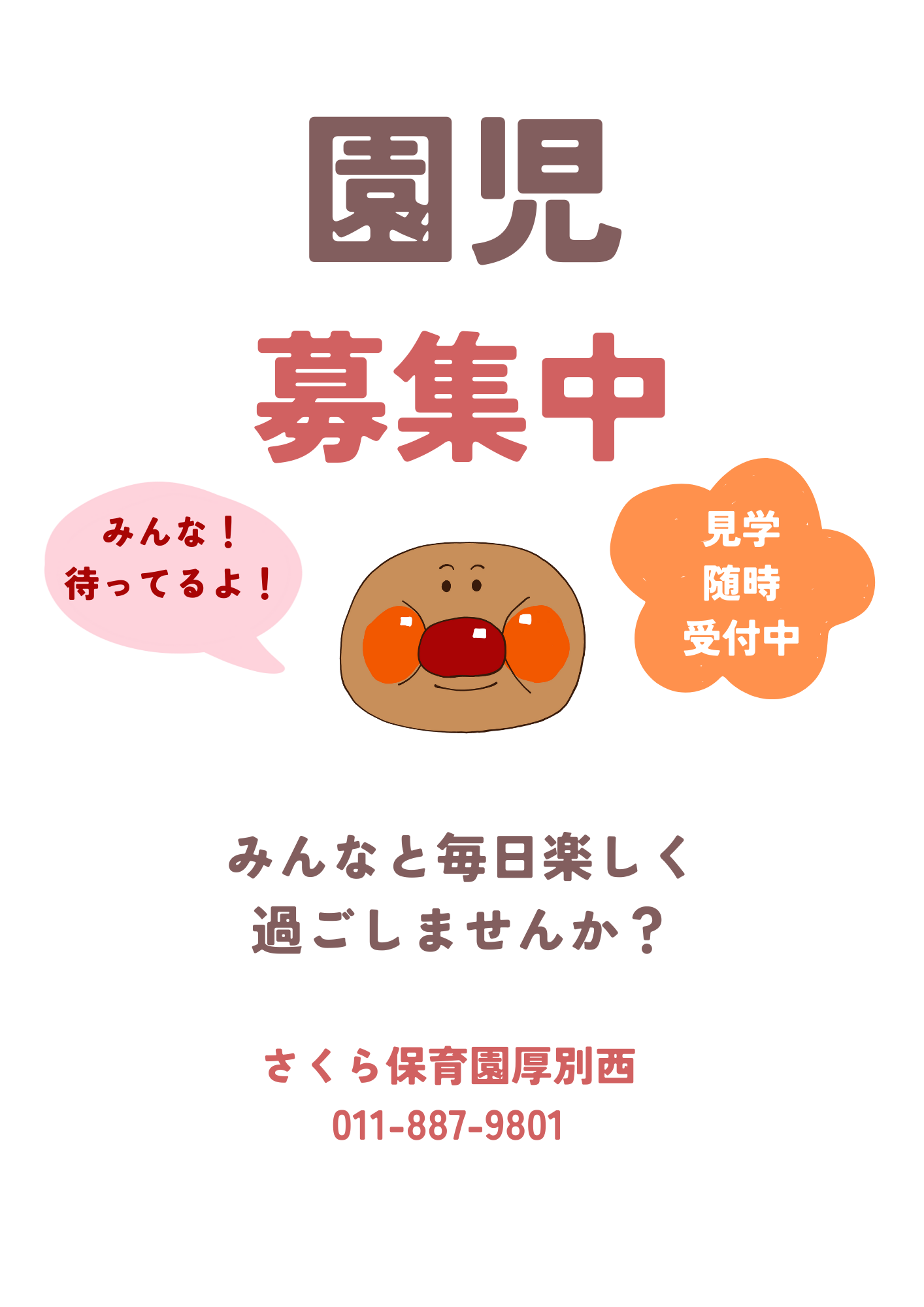 子どもたちにとって安定した生活、充実した活動ができるように、保育士共有理解のもと一人ひとりの個性、才能をのばすように努めてまいります。